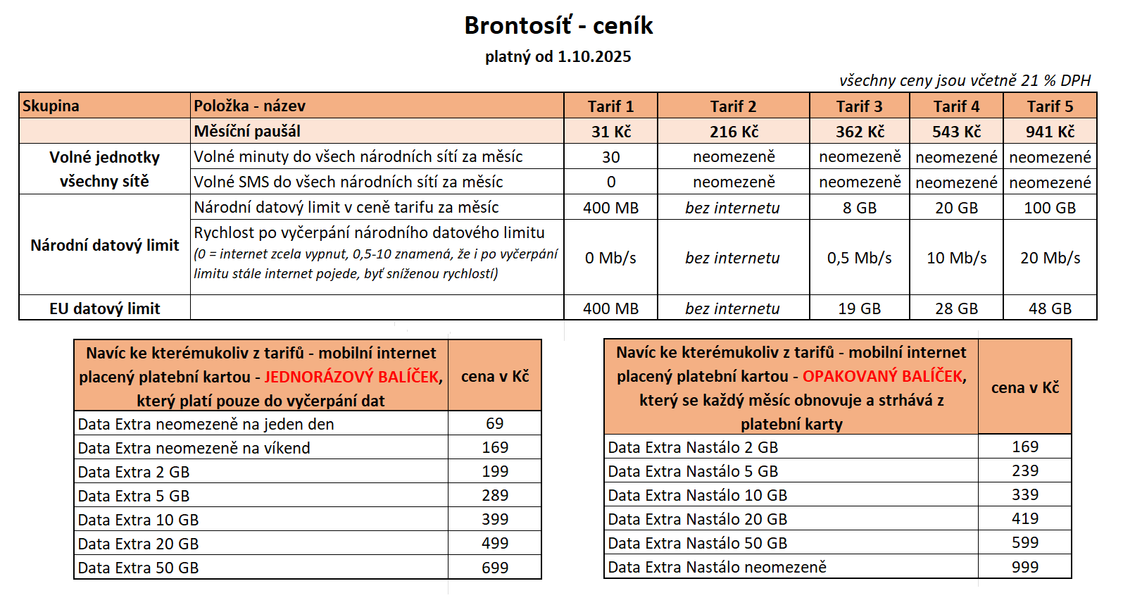 V případě zájmu o přechod k Brontosíti, potřeby změny parametrů nebo informaci o cenách a jiných podmínkách se prosím obraťte s požadavkem na mail Tato e-mailová adresa je chráněna před spamboty. Pro její zobrazení musíte mít povolen Javascript..